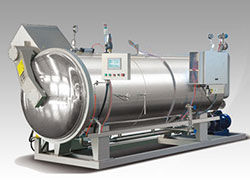 3、電腦程控全自動 ,恒溫、恒壓,回轉式,噴淋風扇內循環等系列臥式殺菌鍋。